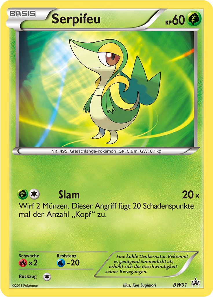 | Kaufen? | Kaufen Sie Ihre Serpifeu Pokemon-Karte aus dem Schwarz & Weiss Promos-Erweiterung. |