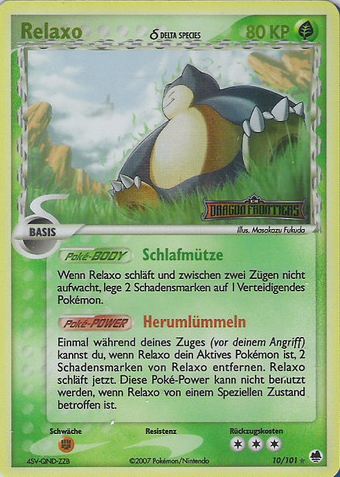 | Kaufen? | Kaufen Sie Ihre Relaxo Pokemon-Karte aus dem Dragon Frontiers-Erweiterung. |