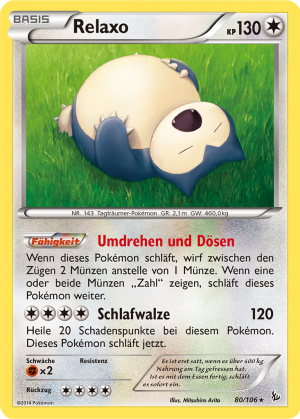 | Alle Karten | Sehen Sie alle Relaxo-Pokémonkarten in einer Übersicht. |