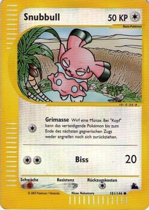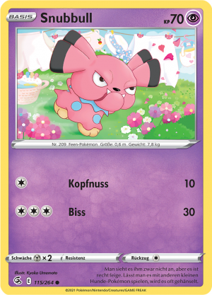 | Alle Karten | Sehen Sie alle Snubbull-Pokémonkarten in einer Übersicht. |