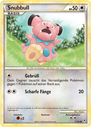 | Alle Karten | Sehen Sie alle Snubbull-Pokémonkarten in einer Übersicht. |