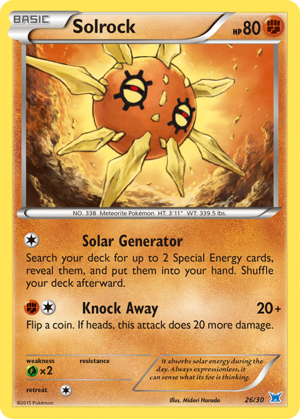 | Kaufen? | Kaufen Sie Ihre Solrock Pokemon-Karte aus dem XY Trainer Kit Latios-Erweiterung. |