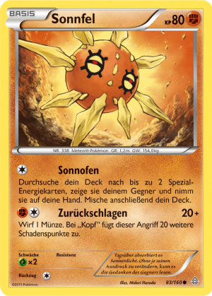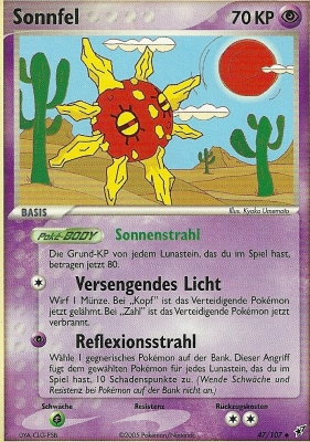 | Kaufen? | Kaufen Sie Ihre Sonnfel Pokemon-Karte aus dem Deoxys-Erweiterung. |