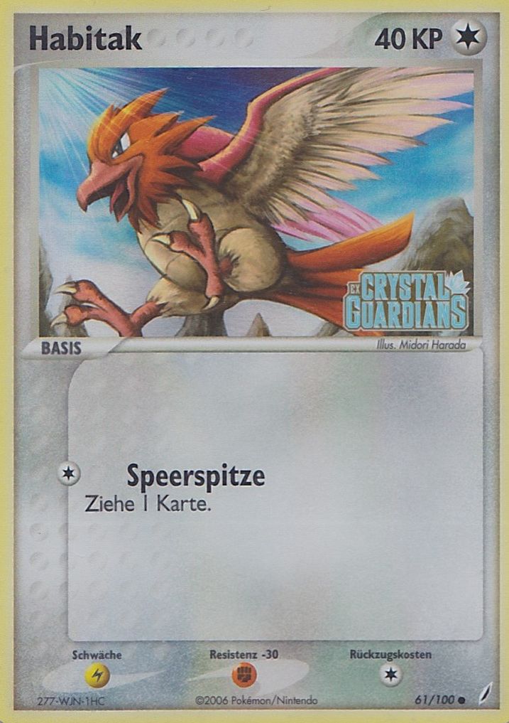 | Kaufen? | Kaufen Sie Ihre Habitak Pokemon-Karte aus dem Crystal Guardians-Erweiterung. |