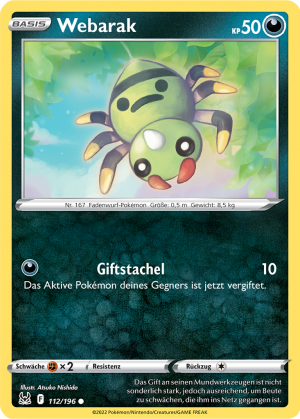 | Alle Karten | Sehen Sie alle Webarak-Pokémonkarten in einer Übersicht. |