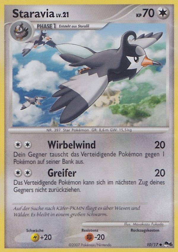 | Kaufen? | Kaufen Sie Ihre Staravia Pokemon-Karte aus dem POP Serie 6-Erweiterung. |