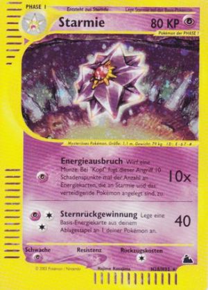 | Alle Karten | Sehen Sie alle Starmie-Pokémonkarten in einer Übersicht. |