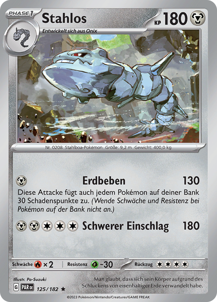 | Kaufen? | Kaufen Sie Ihre Stahlos Pokemon-Karte aus dem Paradoxrift-Erweiterung. |
