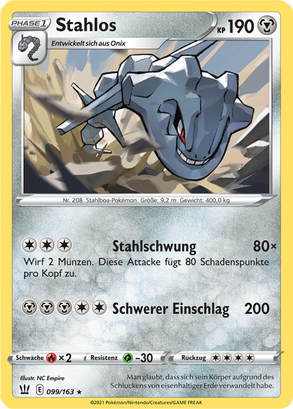 | Alle Karten | Sehen Sie alle Stahlos-Pokémonkarten in einer Übersicht. |