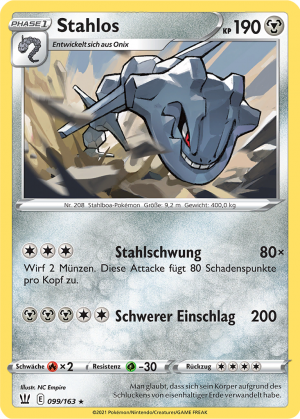 | Alle Karten | Sehen Sie alle Stahlos-Pokémonkarten in einer Übersicht. |