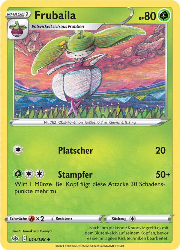 | Kaufen? | Kaufen Sie Ihre Frubaila Pokemon-Karte aus dem Schaurige Herrschaft-Erweiterung. |