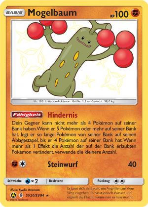 | Kaufen? | Kaufen Sie Ihre Mogelbaum Pokemon-Karte aus dem Verborgene Machte-Erweiterung. |