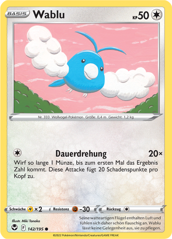 | Kaufen? | Kaufen Sie Ihre Wablu Pokemon-Karte aus dem Silberne Sturmwinde-Erweiterung. |