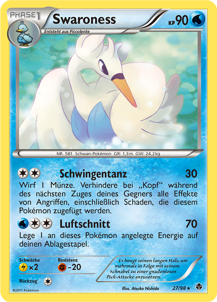 | Alle Karten | Sehen Sie alle Swaroness-Pokémonkarten in einer Übersicht. |