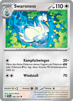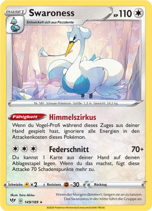 | Alle Karten | Sehen Sie alle Swaroness-Pokémonkarten in einer Übersicht. |