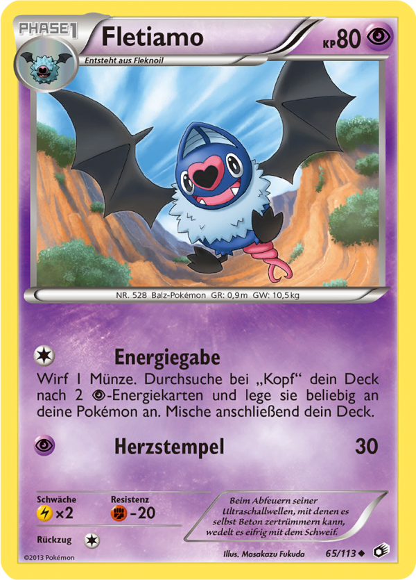 | Kaufen? | Kaufen Sie Ihre Fletiamo Pokemon-Karte aus dem Legendäre Schätze-Erweiterung. |
