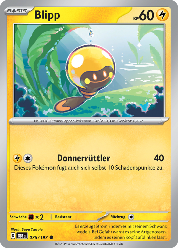 | Kaufen? | Kaufen Sie Ihre Blipp Pokemon-Karte aus dem Obsidianflammen-Erweiterung. |