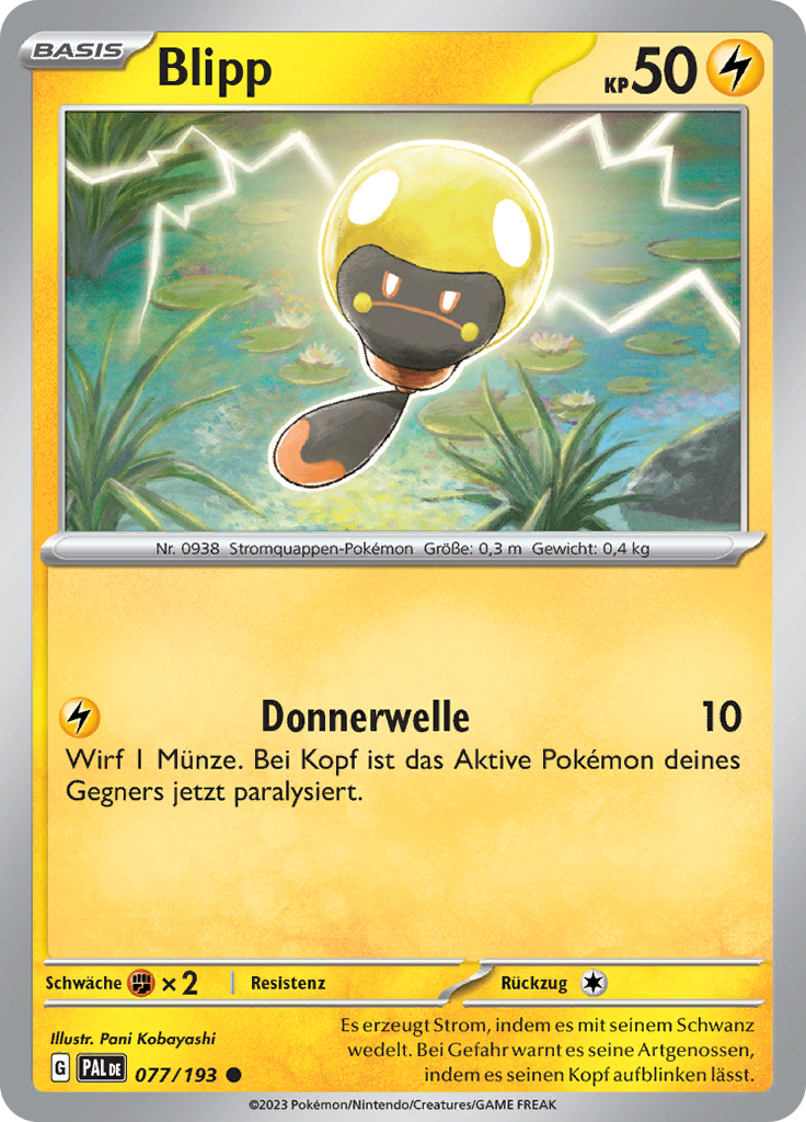| Kaufen? | Kaufen Sie Ihre Blipp Pokemon-Karte aus dem Entwicklungen in Paldea-Erweiterung. |