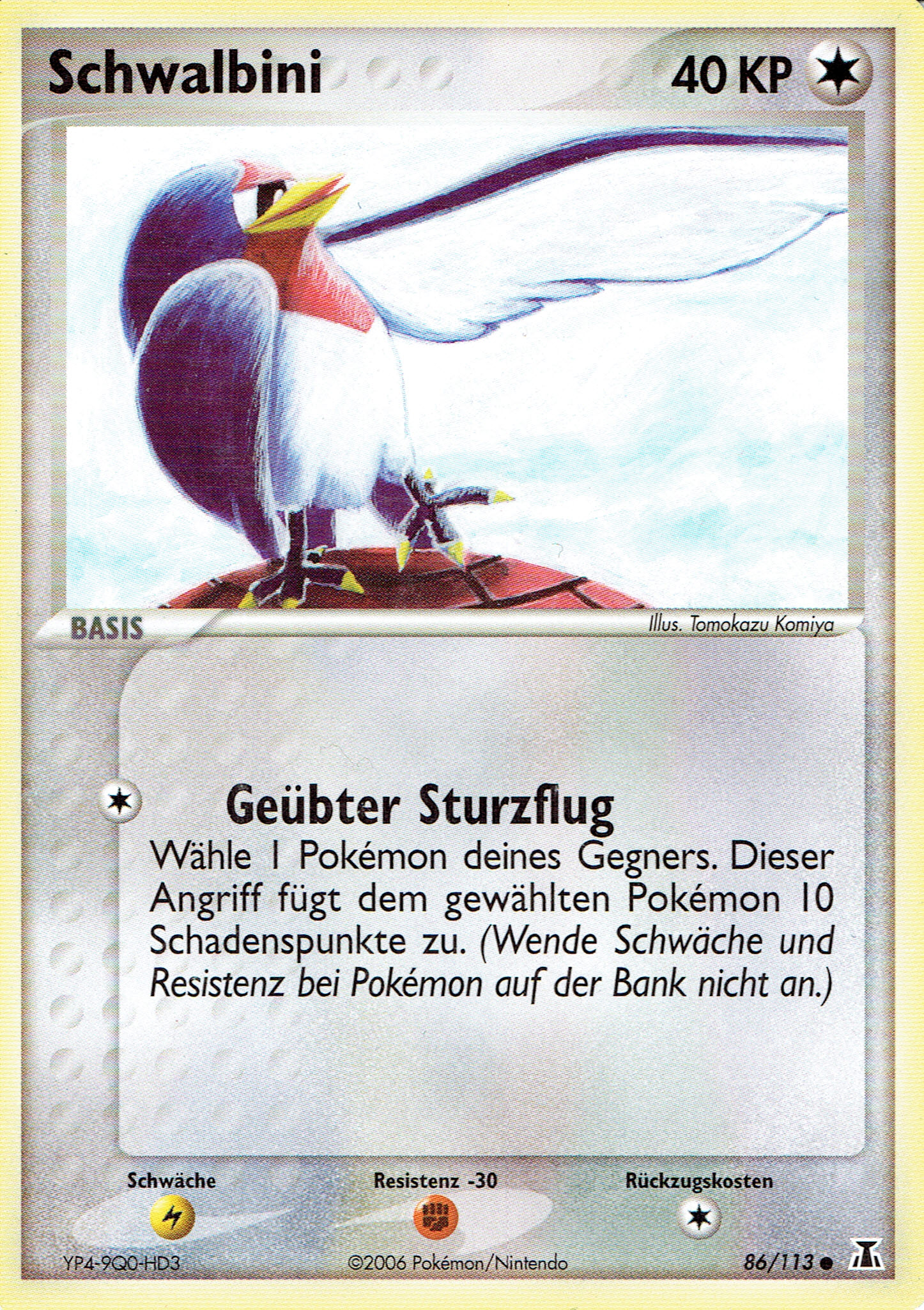 | Kaufen? | Kaufen Sie Ihre Schwalbini Pokemon-Karte aus dem Delta Species-Erweiterung. |