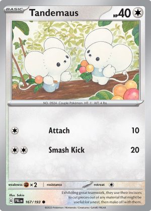 | Kaufen? | Kaufen Sie Ihre Tandemaus Pokemon-Karte aus dem Scarlet & Violet-Erweiterung. |