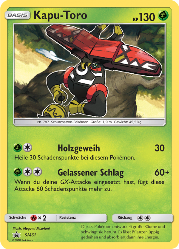 | Kaufen? | Kaufen Sie Ihre Kapu-Toro Pokemon-Karte aus dem Sun & Moon Promos-Erweiterung. |