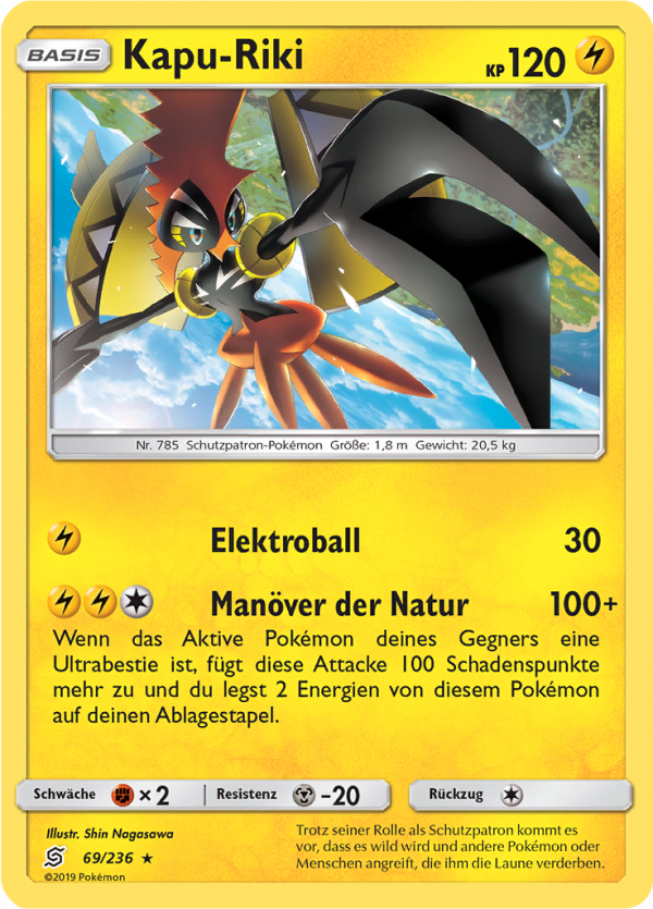 | Erscheinungsdatum | Diese Pokemon Karte wurde am 02 August 2019 von Nintendo veröffentlicht. |