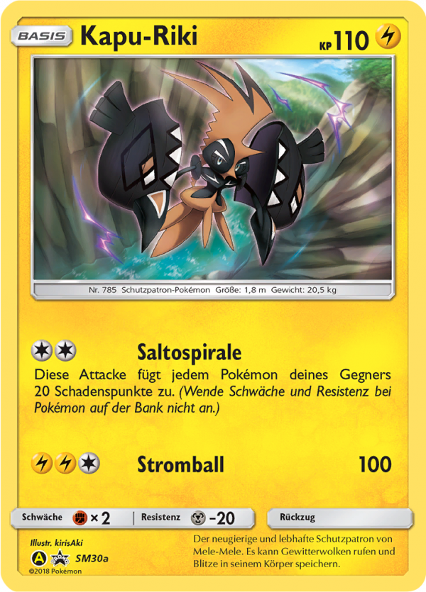 | Kaufen? | Kaufen Sie Ihre Kapu-Riki Pokemon-Karte aus dem Sun & Moon Promos-Erweiterung. |