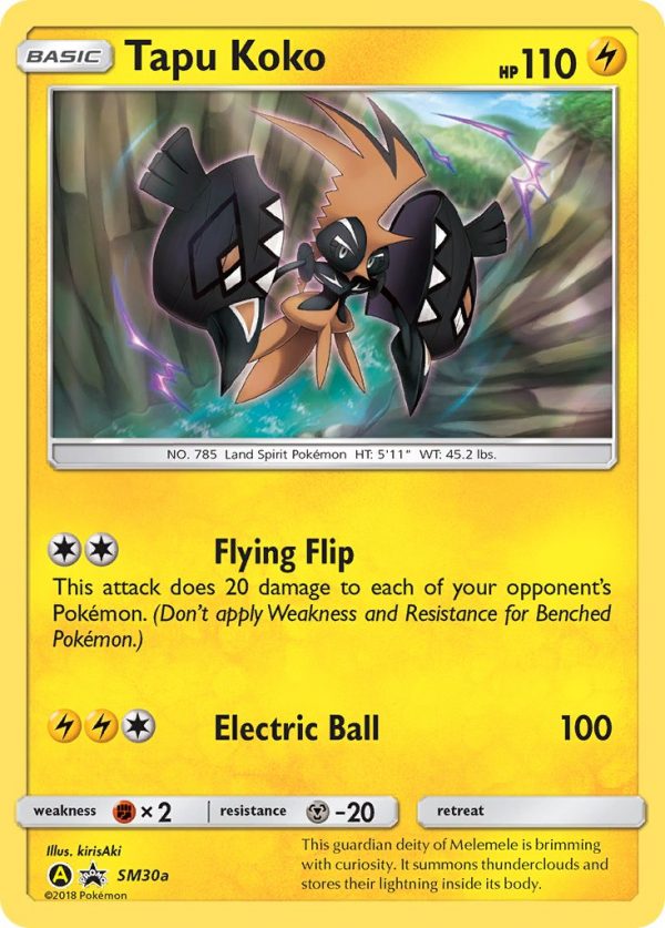 | Kaufen? | Kaufen Sie Ihre Tapu Koko Pokemon-Karte aus dem Sun & Moon Promos-Erweiterung. |