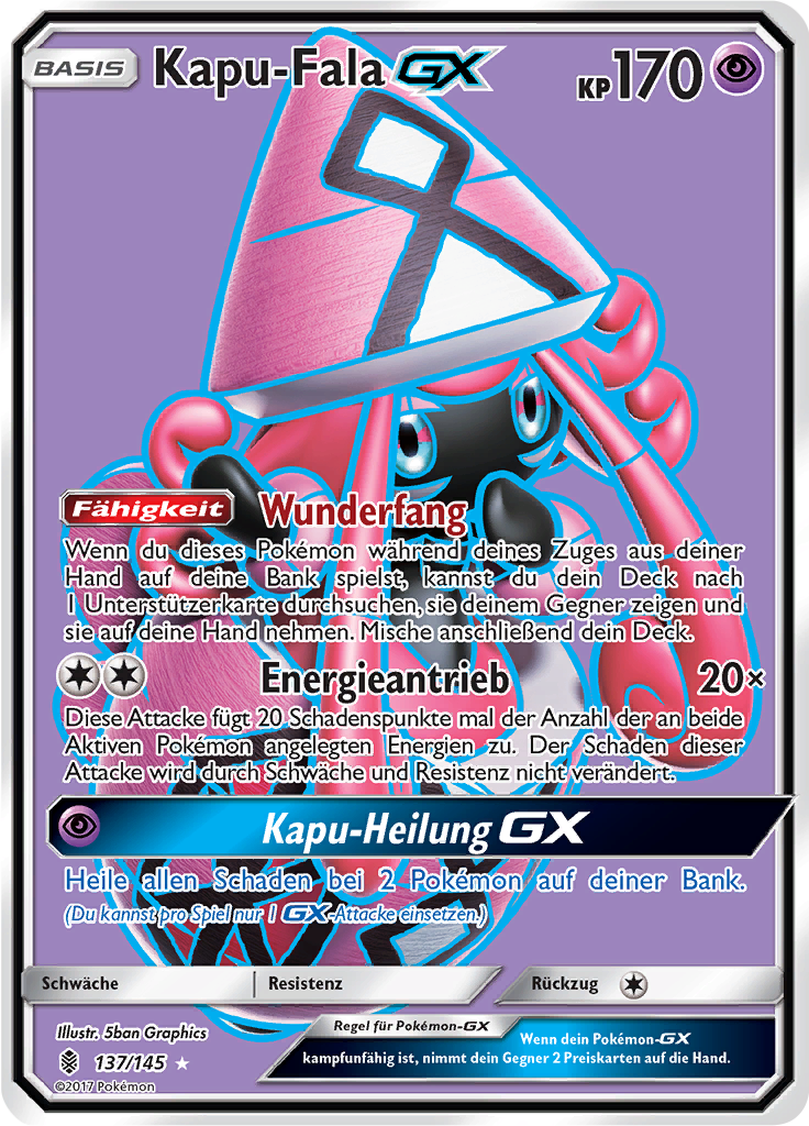 | Kaufen? | Kaufen Sie Ihre Kapu-Fala-GX Pokemon-Karte aus dem Stunde der Wächter-Erweiterung. |