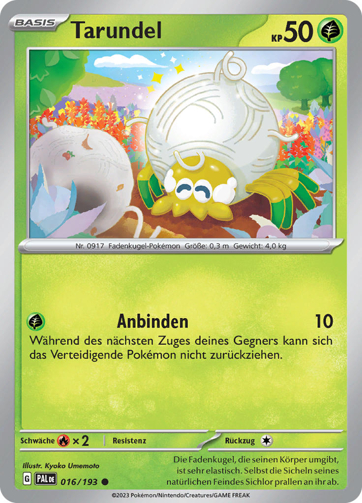 | Kaufen? | Kaufen Sie Ihre Tarundel Pokemon-Karte aus dem Entwicklungen in Paldea-Erweiterung. |