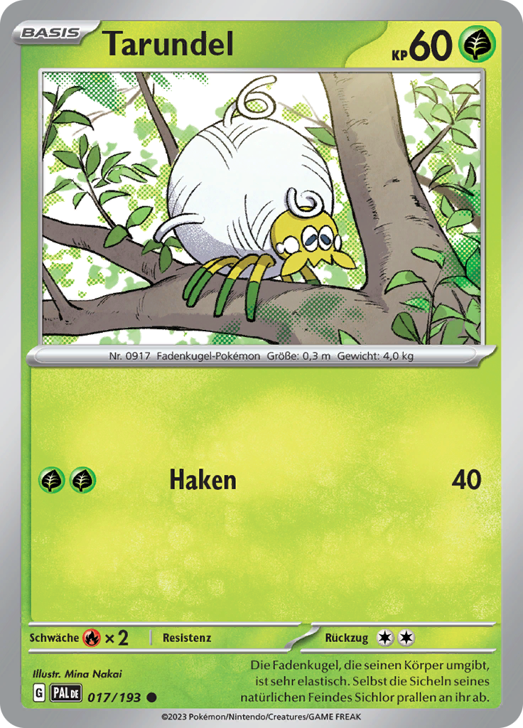 | Kaufen? | Kaufen Sie Ihre Tarundel Pokemon-Karte aus dem Entwicklungen in Paldea-Erweiterung. |