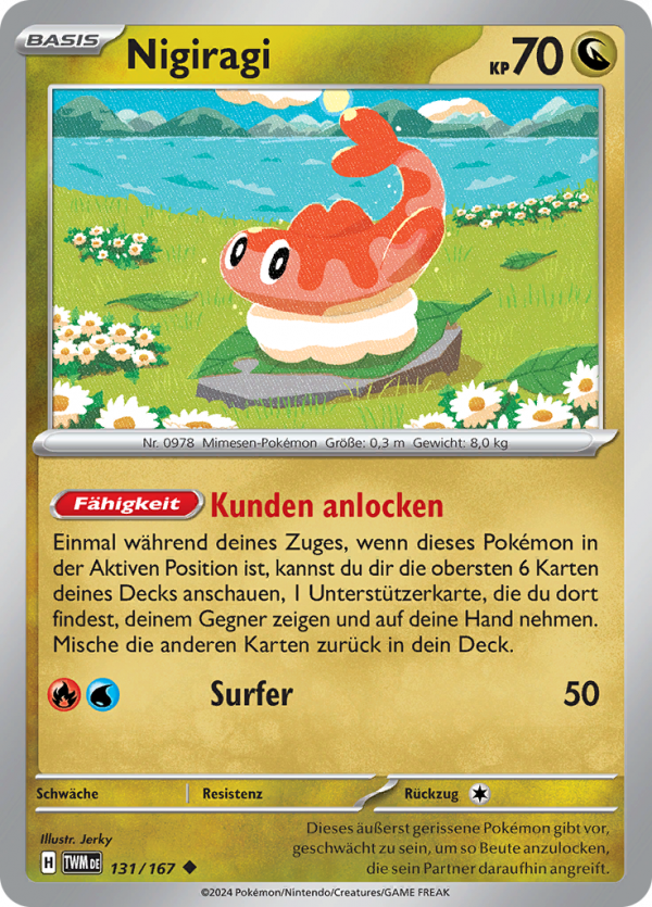 | Kaufen? | Kaufen Sie Ihre Nigiragi Pokemon-Karte aus dem Maskerade im Zwielicht-Erweiterung. |