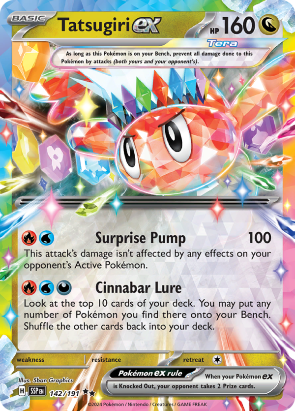| Kaufen? | Kaufen Sie Ihre Tatsugiri ex Pokemon-Karte aus dem Surging Sparks-Erweiterung. |