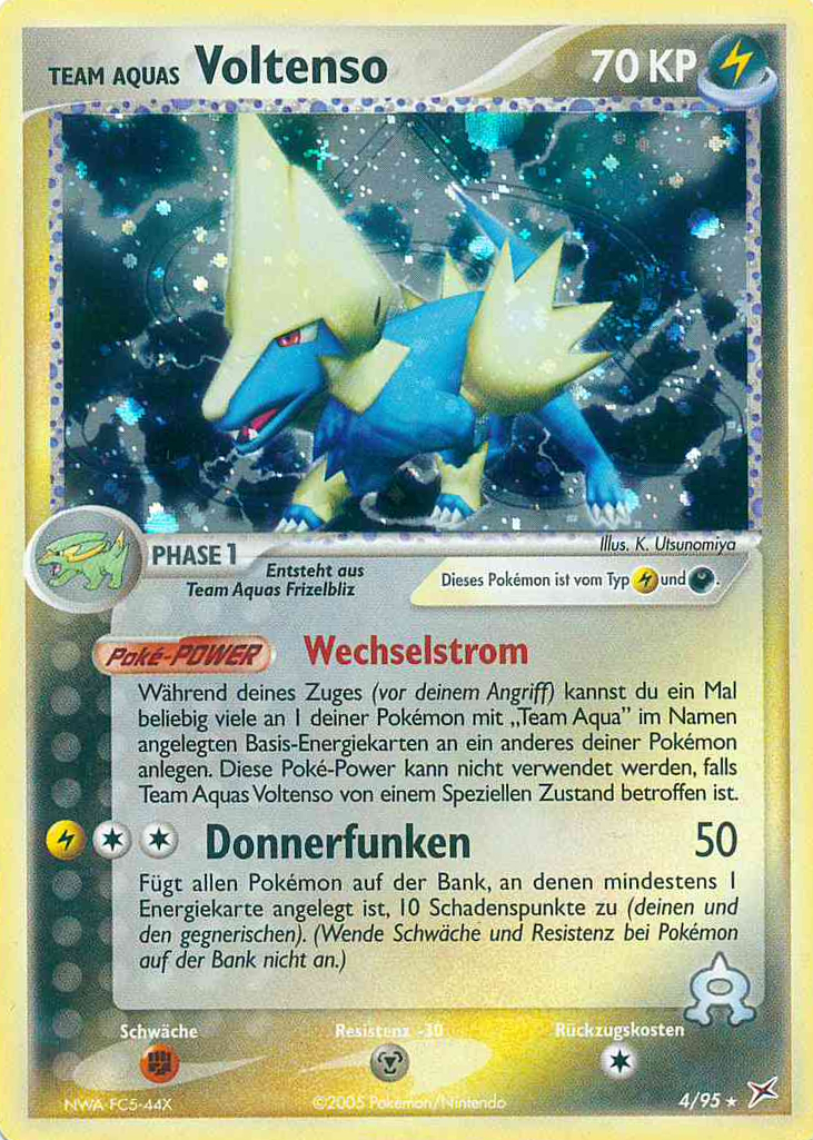| Kaufen? | Kaufen Sie Ihre Team Aquas Voltenso Pokemon-Karte aus dem Team Magma vs Team Aqua-Erweiterung. |
