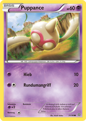| Alle Karten | Sehen Sie alle Puppance-Pokémonkarten in einer Übersicht. |