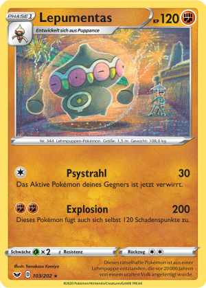 | Alle Karten | Sehen Sie alle Lepumentas-Pokémonkarten in einer Übersicht. |