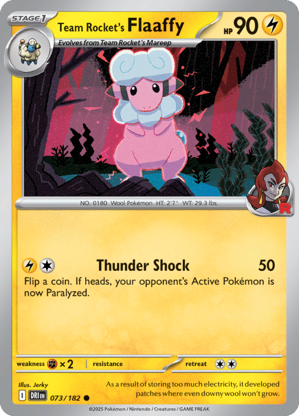 | Kaufen? | Kaufen Sie Ihre Team Rocket's Flaaffy Pokemon-Karte aus dem Destined Rivals-Erweiterung. |