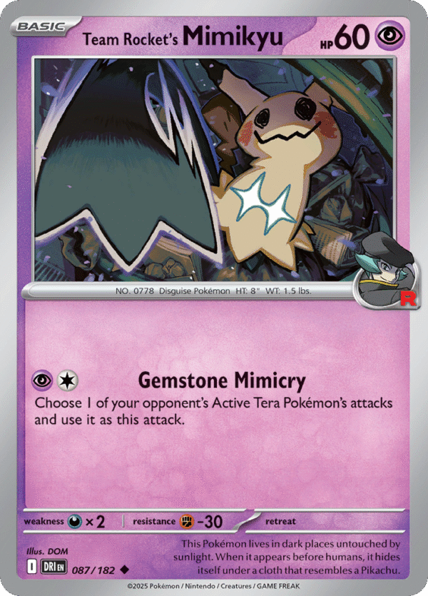 | Kaufen? | Kaufen Sie Ihre Team Rocket's Mimikyu Pokemon-Karte aus dem Destined Rivals-Erweiterung. |