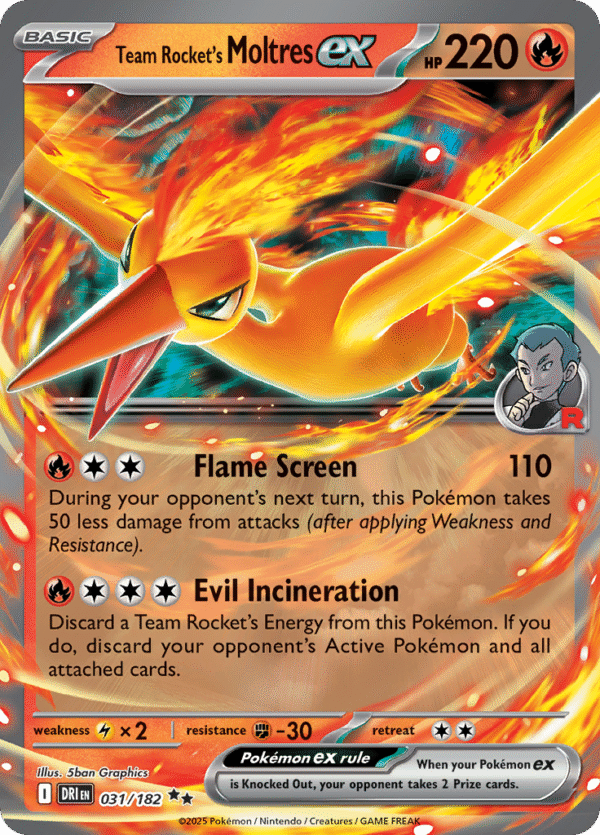 | Kaufen? | Kaufen Sie Ihre Team Rocket's Moltres ex Pokemon-Karte aus dem Destined Rivals-Erweiterung. |
