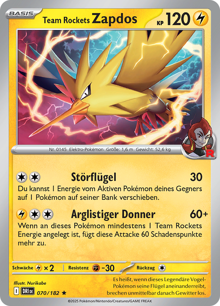 | Kaufen? | Kaufen Sie Ihre Team Rockets Zapdos Pokemon-Karte aus dem Ewige Rivalen-Erweiterung. |