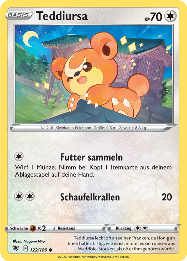 | Kaufen? | Kaufen Sie Ihre Teddiursa Pokemon-Karte aus dem Astralglanz-Erweiterung. |