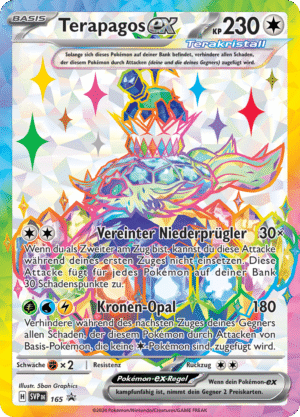 | Kaufen? | Kaufen Sie Ihre Terapagos-ex Pokemon-Karte aus dem Prismatische Entwicklungen-Erweiterung. |