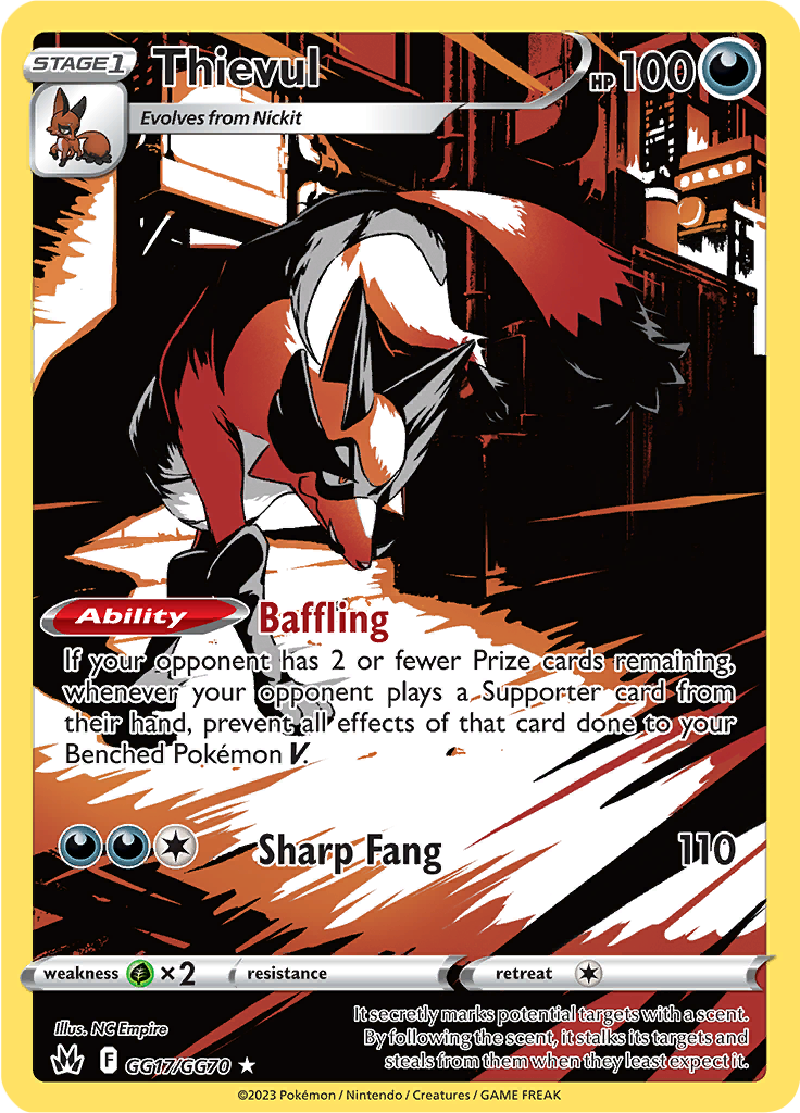 | Kaufen? | Kaufen Sie Ihre Thievul Pokemon-Karte aus dem Crown Zenith - Galarian Gallery-Erweiterung. |