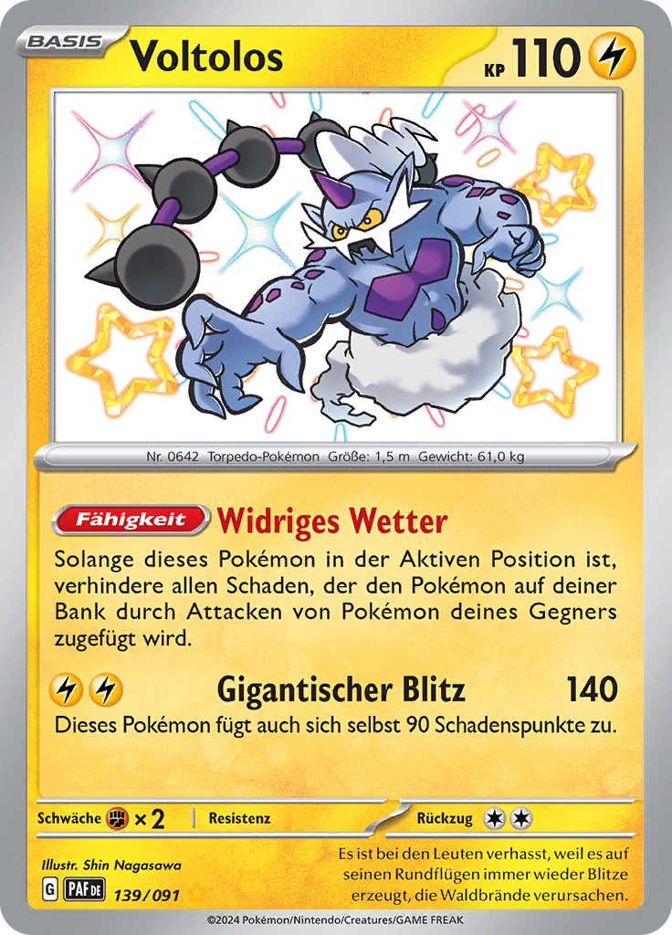 | Kaufen? | Kaufen Sie Ihre Voltolos Pokemon-Karte aus dem Paldeas Schicksale-Erweiterung. |
