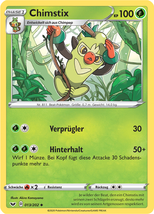 | Kaufen? | Kaufen Sie Ihre Chimstix Pokemon-Karte aus dem Schwert & Schild-Erweiterung. |