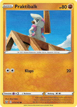 | Alle Karten | Sehen Sie alle Praktibalk-Pokémonkarten in einer Übersicht. |