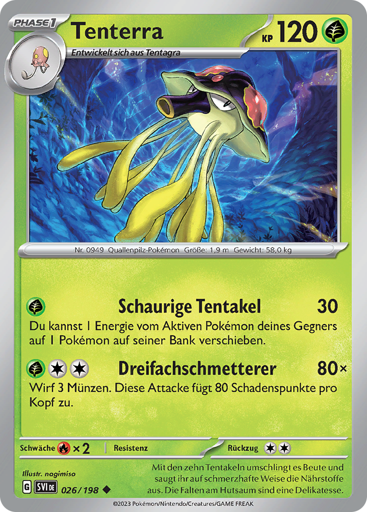 | Kaufen? | Kaufen Sie Ihre Tenterra Pokemon-Karte aus dem Karmesin & Purpur-Erweiterung. |