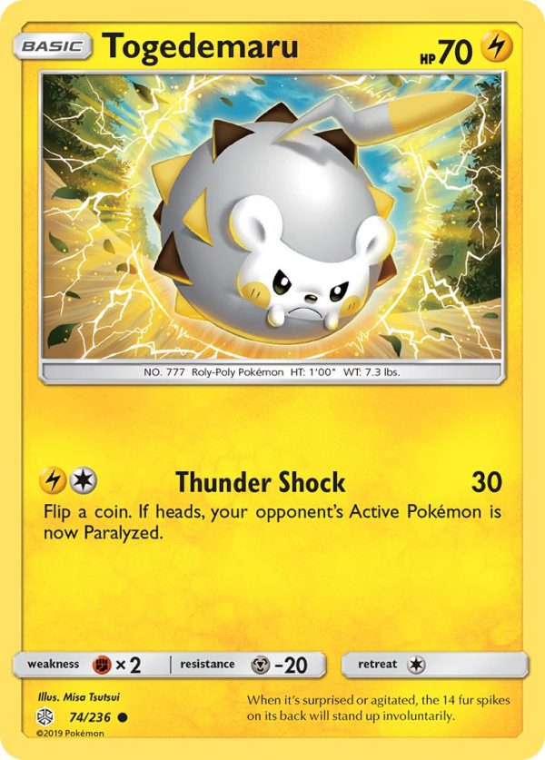 | Kaufen? | Kaufen Sie Ihre Togedemaru Pokemon-Karte aus dem Cosmic Eclipse-Erweiterung. |