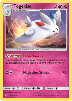 | Alle Karten | Sehen Sie alle Togekiss-Pokémonkarten in einer Übersicht. |