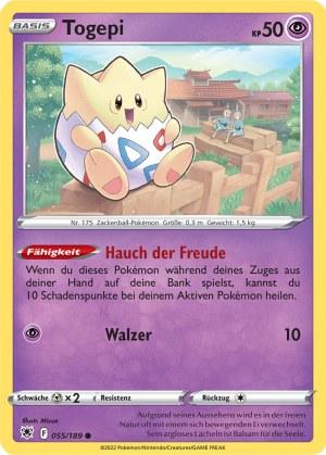 | Alle Karten | Sehen Sie alle Togepi-Pokémonkarten in einer Übersicht. |